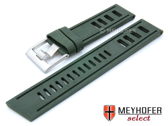 Uhrenarmband Palau 22mm dunkelgrün Silikon glatt matt Lochmuster von MEYHOFER (Schließenanstoß 22 mm)